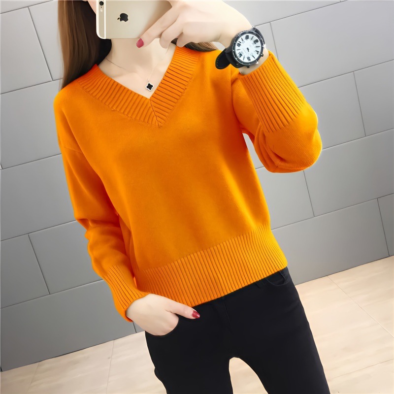春と秋のvネックセーター