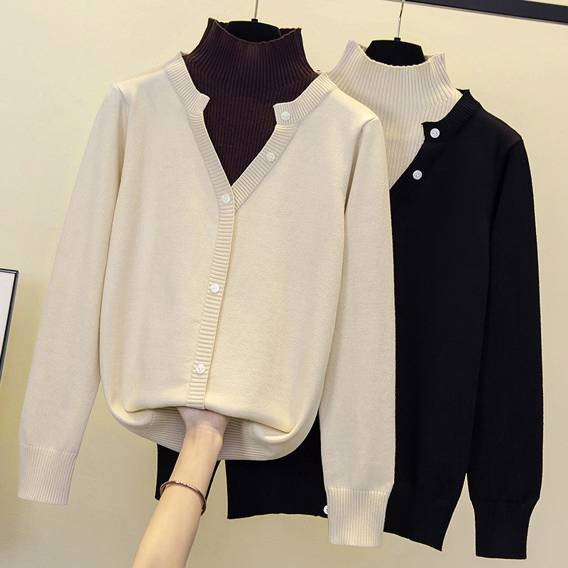 やせて見える偽の2つの半高襟の底のシャツの女装の2024秋冬の新型のセーターの太っている妹のゆったりしている上着