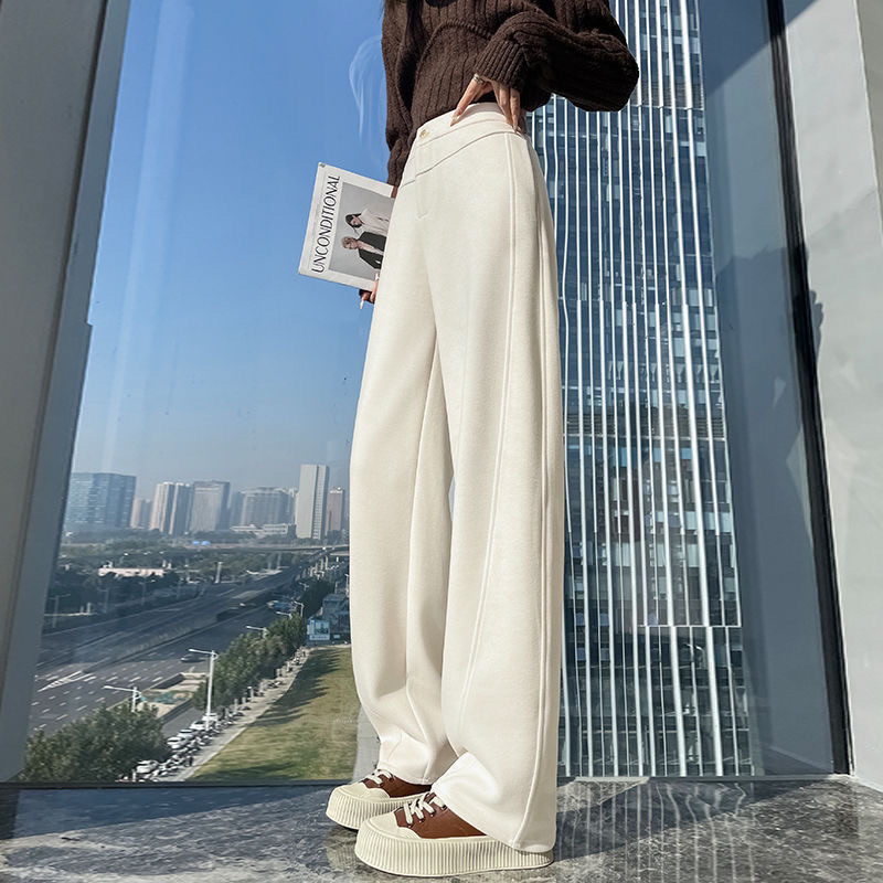 2024秋冬厚手のワイドパンツ秋のペンダント感ストレートカジュアルパンツ女性の新しい鎌のズボン