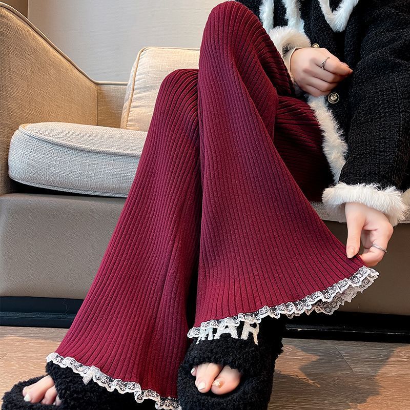小柄な毛のワイドパンツの女性のハイウエストの9分のズボンの2024冬の厚い垂れ下がった感じの大きい足のズボンのゆったりしているカジュアルなズボン