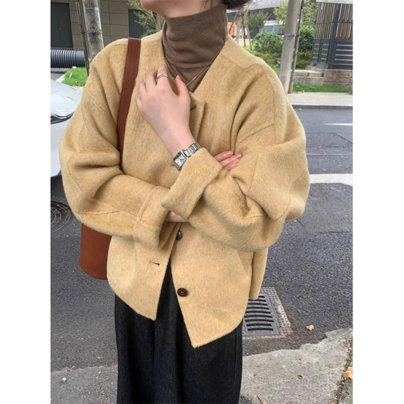 毛のコートの婦人服の秋冬の2024年の新型のファッションのデザイン感の小さい大衆の外はゆったりしている大きいサイズのラシャのコートを着ます。