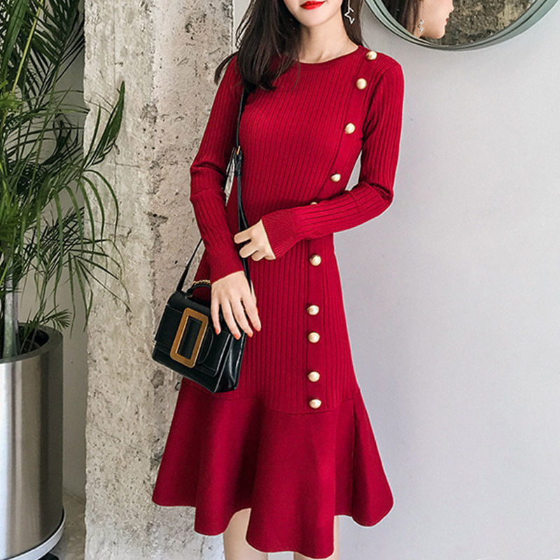 気品の魚の尾のメリヤスのワンピースは腰を収めてやせている女性の2024の新型の春秋の新型のスカートの純色の淑女のスカートを現します。