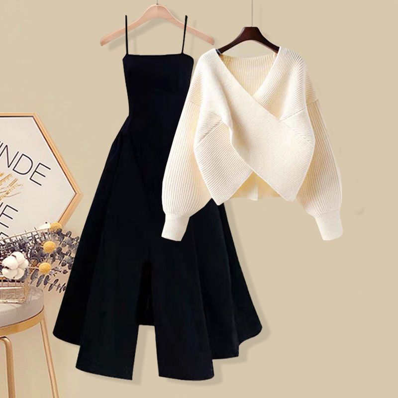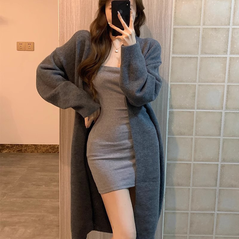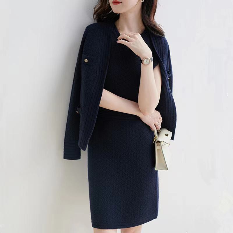 秋の2点セットのスカートは軽くて豪華な気質の淑のワンピースのニットの上着のコートを着て身を修めます。