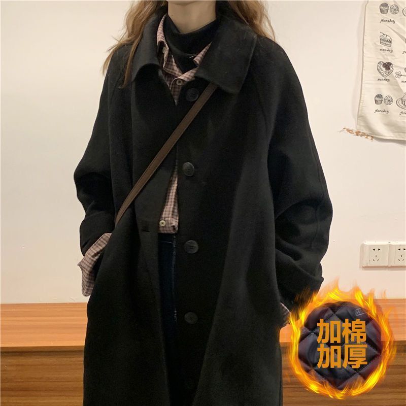 黒いラシャのコートの女性の中の長さは2024年秋冬の新型の気質の女神の範は毛を厚くします。