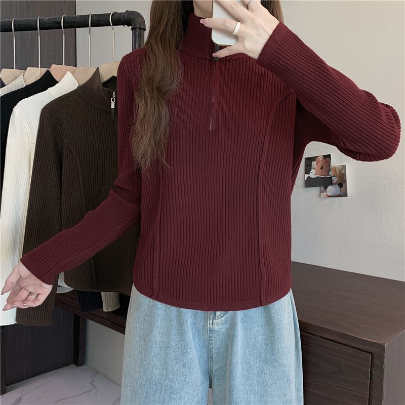 秋冬ファスナーセーター長袖ニット秋冬新作デザインゆるい洋気高襟ニット