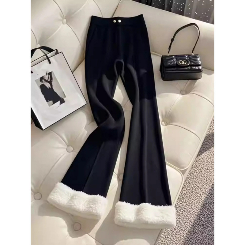 秋冬の毛はワイドパンツの女性の字の紋様を持っています。