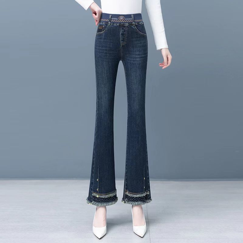腰を緩めて微ラッパのジーパンの女性は身を修めてやせています。