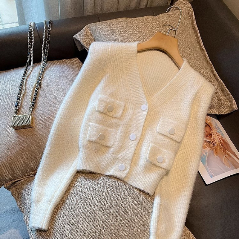 秋冬2024新型の修身ボトムシャツの女性はvネックのセーターのファッション的な長袖のニットの洋風の上着のファッションを合わせます。