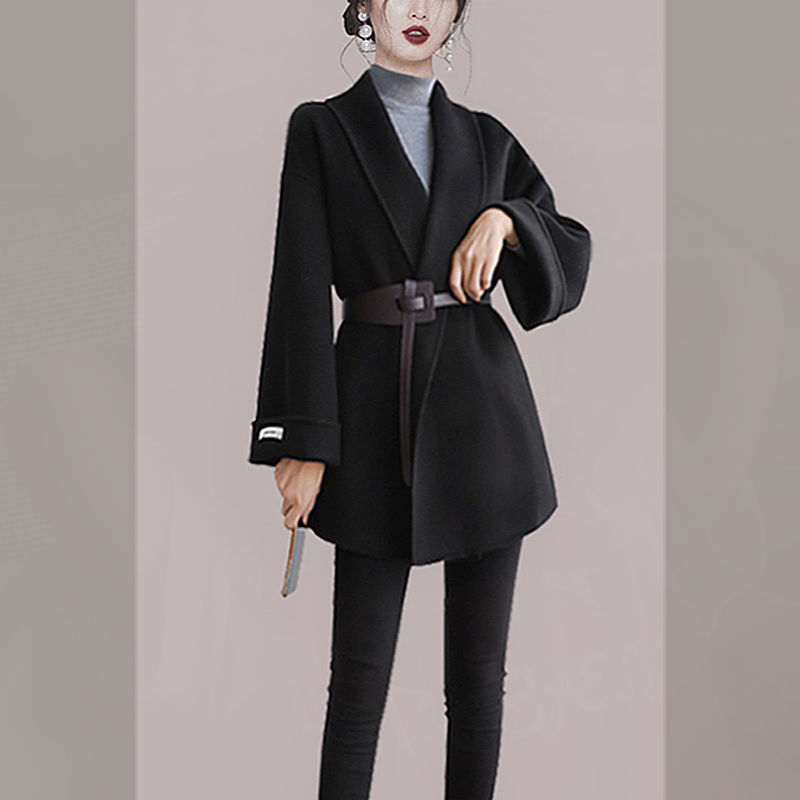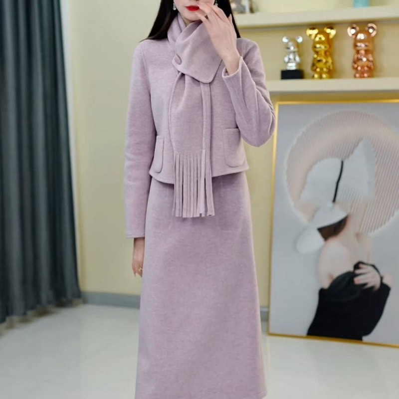 女神範カシミヤワンピース女性秋冬2024新作感とコート気質の中にロングスカートを着ます。