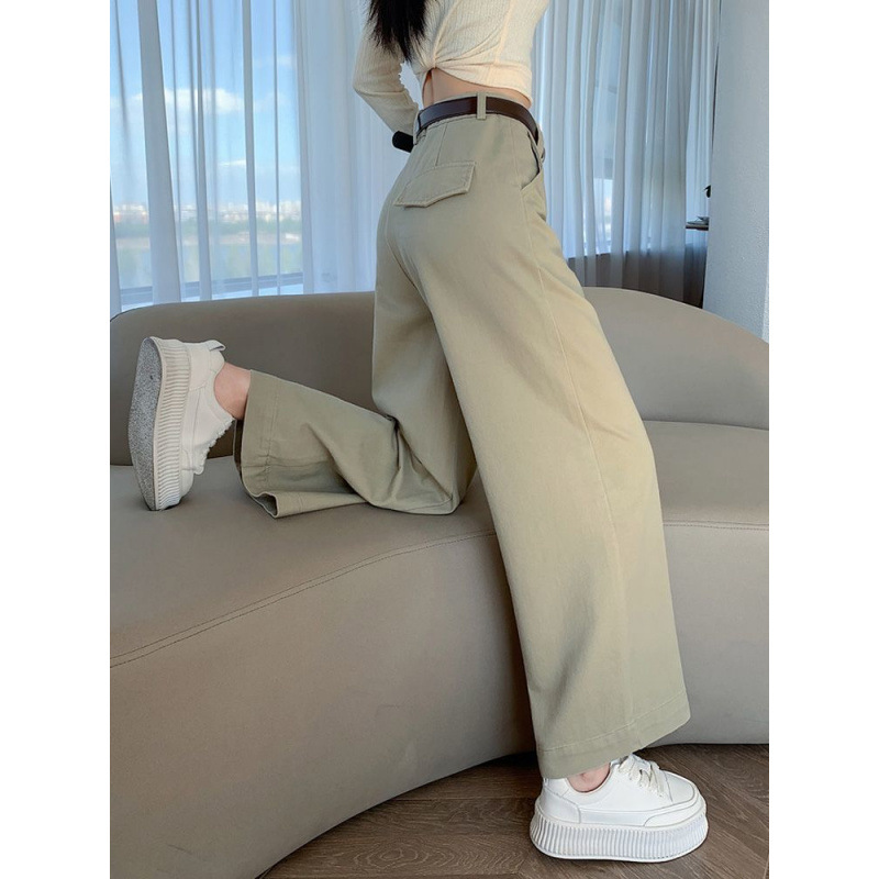 秋の水洗い綿九分広脚ズボン女2024高腰純色カジュアルパンツの小柄なゆったりとした痩せたストレートパンツ