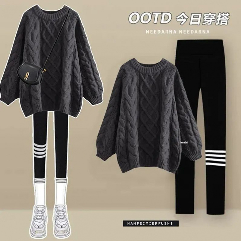 秋の優しさは女性2024の新しい韓国版ファッションニットセーターを着て、カジュアルなサメのズボンを2セット着ています