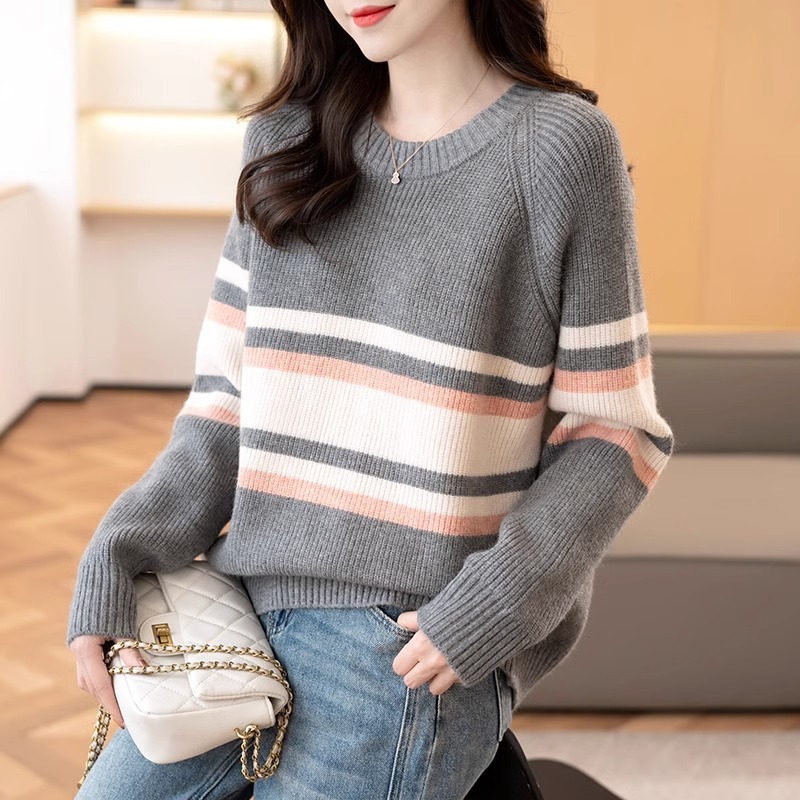 秋冬の新型丸首セーターの女性はゆったりしていて、韓国版の大きいサイズを着ています。