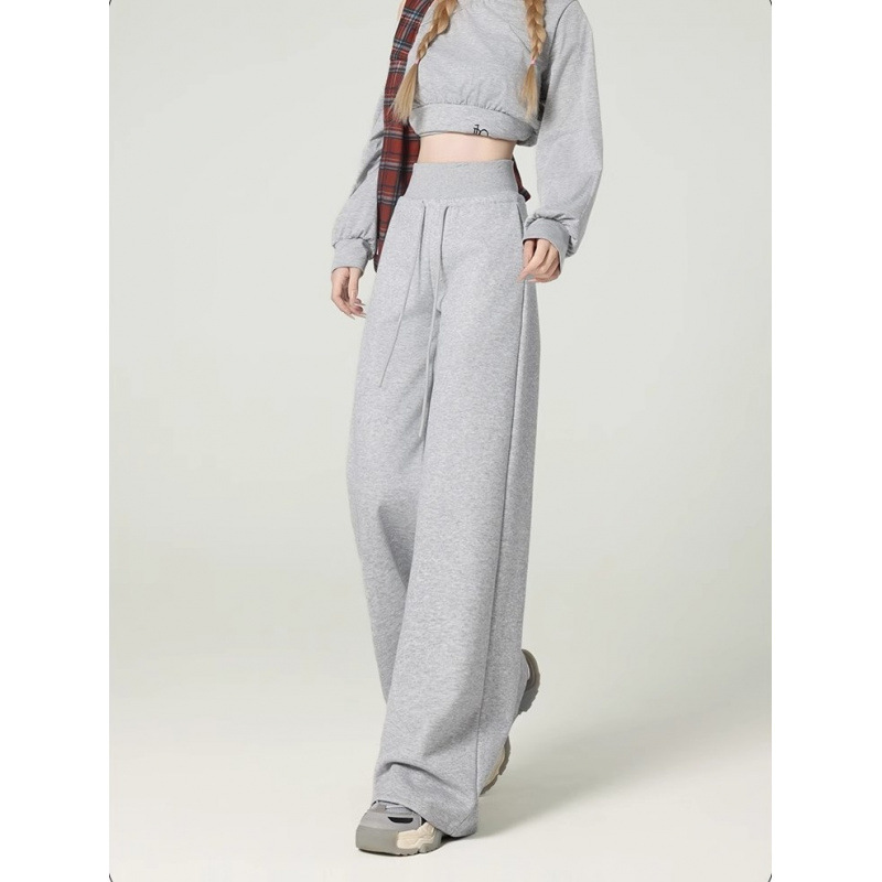 アメリカのスポーツパンツにベルベットをつけた2024秋冬のストレートパンツの新型カジュアルなゆるい痩せたワイドパンツは腰が高くて痩せている