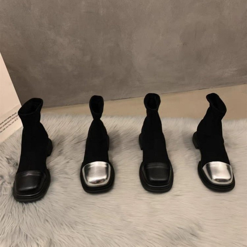ヨーロッパ駅2024秋冬の新型マーティンブーツの女性の弾力性のあるフラットファッションのカジュアルな組み合わせのネットの厚い底のショートブーツの女性
