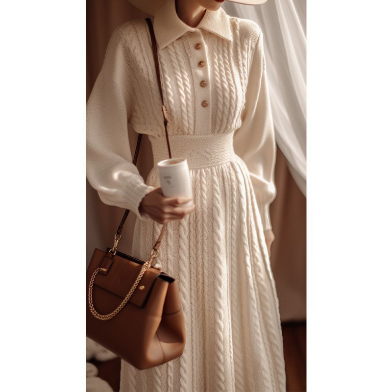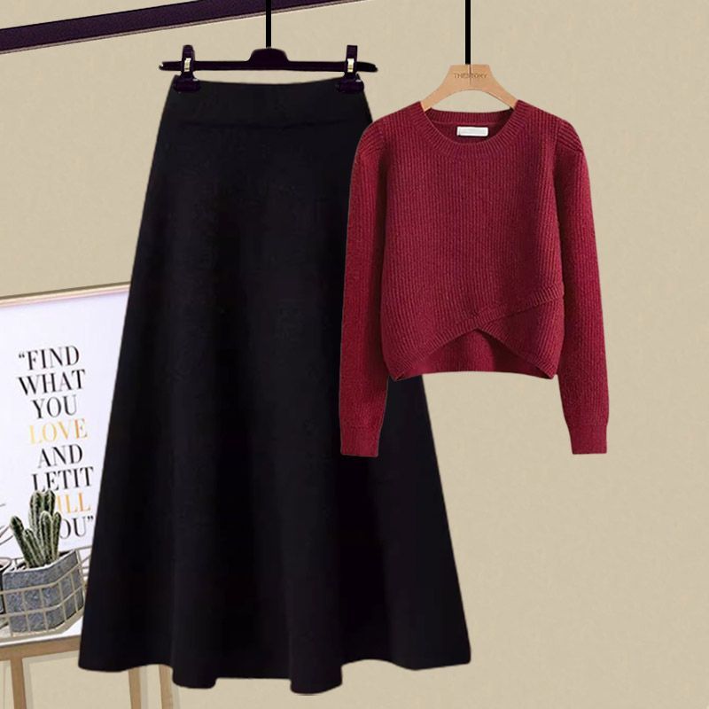 秋には、1セット2024の新しい感覚の不規則なニットセーターを着て、痩せたスカートを2セット着ています