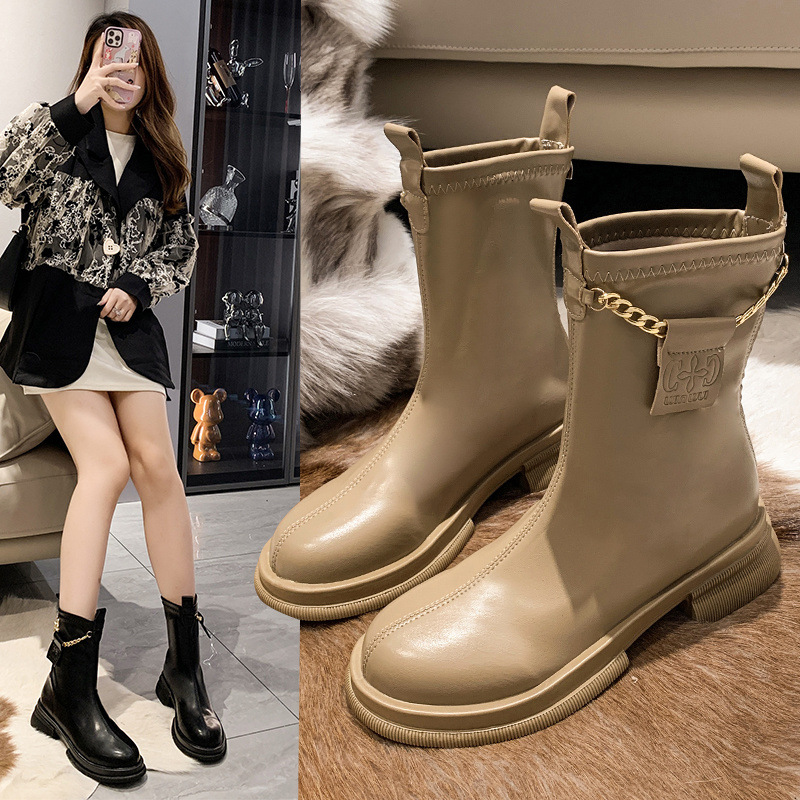 厚い底のマーティンの靴の女性の英倫風のショートブーツの2024年の新型の春と秋の冬のベルベットの百合insの潮のやせている靴
