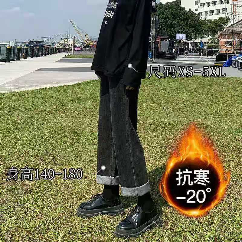 ベルベットのジーンズの女性秋冬2024の新しい冬は、ゆったりとしたやせた腰の高いストレートの外にワイドパンツを着ている