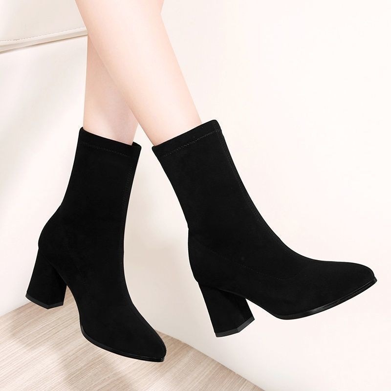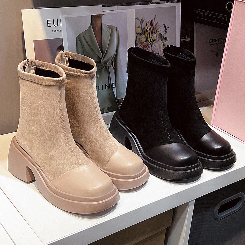 ベルベット英倫復古角頭マーティンブーツ女2002冬の新型ソフトソックス靴弾力ブーツショートブーツ