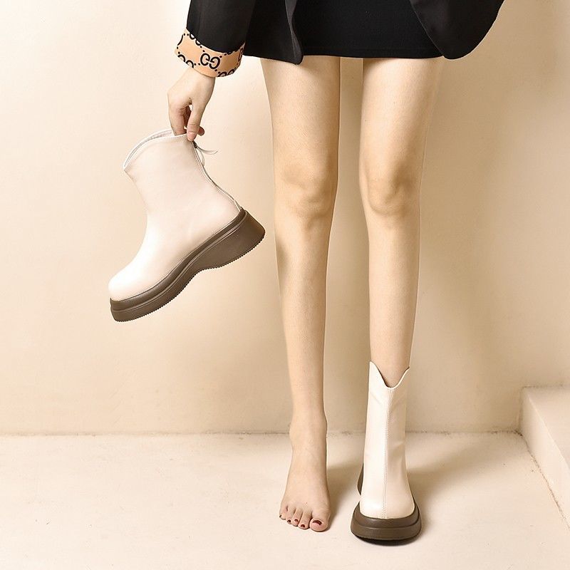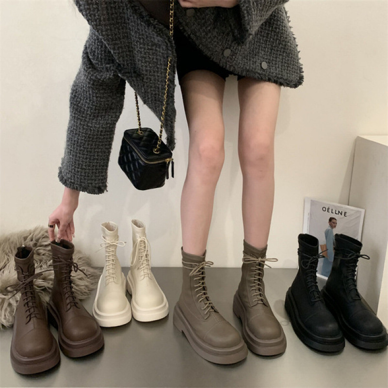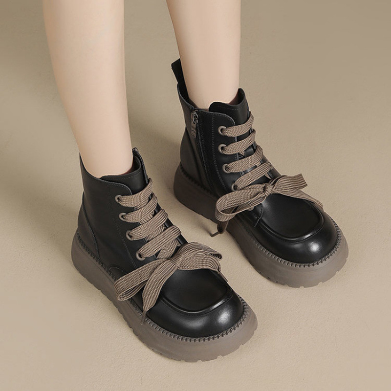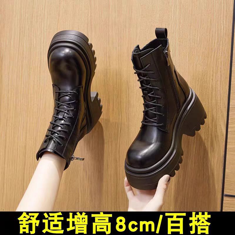 感痩せ靴女2024新型秋冬単靴松餅の厚い底のハイヒールが痩せているレトロなブーツのマーティンブーツ