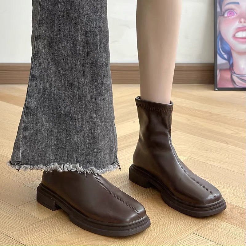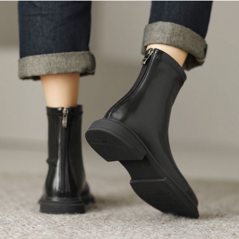 2024秋冬新作マーティン女性靴英倫ファッション痩せブーツファスナー春秋ショートブーツ女性ソフトレザー