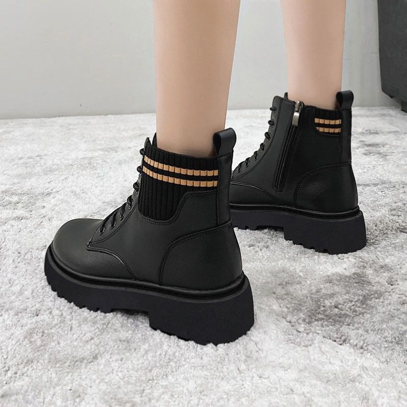 2024年秋冬の新型ネットレッドは厚い底の黒い英倫風マーティンブーツの女性とスカートのショートブーツを爆発させた