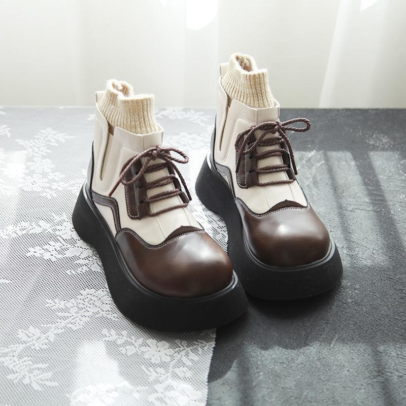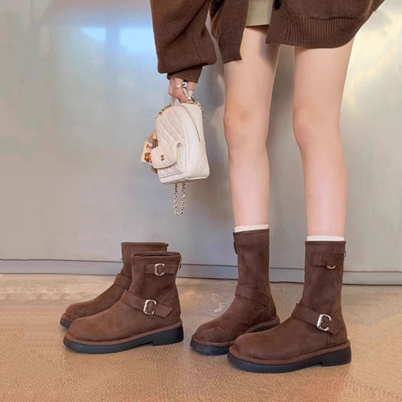 森女文芸レトロな丸い頭の厚い底の大きい靴2024秋冬のベルベットの交差帯のファッションのショートブーツのマーティンの靴の女性