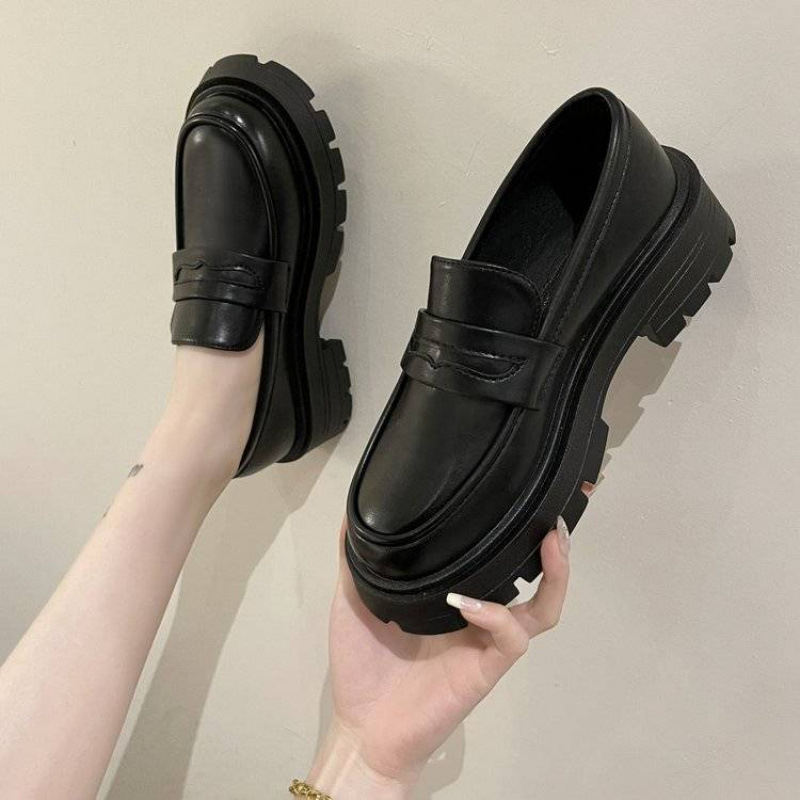 ベルベットのレトロな明るい皮の厚い底の小さな靴の女性英倫風2024秋冬の新しいビスケットの底の音楽福靴の女性靴