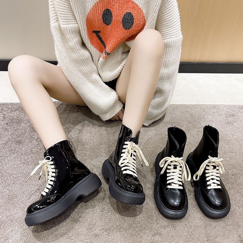 韓国版2024の爆発的なマーティンブーツの女性はinsファッションの英倫風が低くてやせている秋冬のショートブーツの女性を助けます。