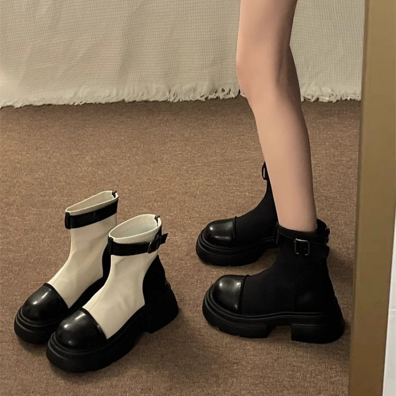 Z マット表面ショートブーツ レディース 2024春秋新作 厚底マーティンブーツ 秋 イギリス風 小柄な方向け スリムショートブーツ