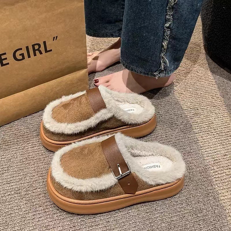 Zz ファー付きスリッパ レディース 2024年秋冬新作 厚底 ソフトファー フラットスリッパ ネット人気 スタイリッシュな綿スリッパ 多用途