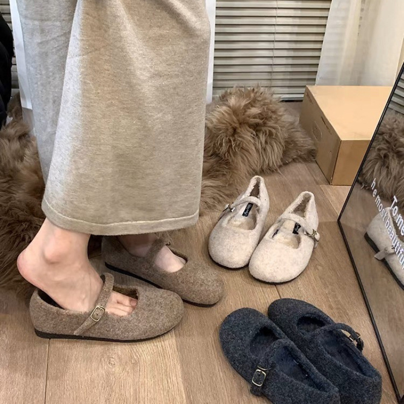 レトロな平底の毛は丸い頭の字で靴の女性を掛けます。