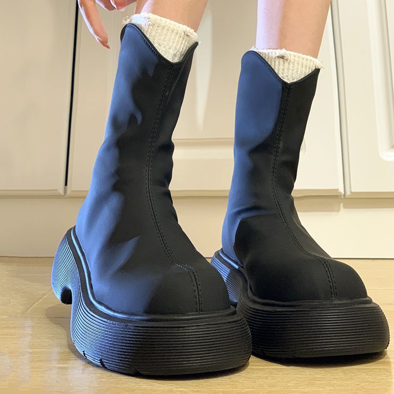 2024秋冬の大きいサイズの女性靴の厚い底の中で筒のショートブーツの女性の高組の英倫風が高くなります。