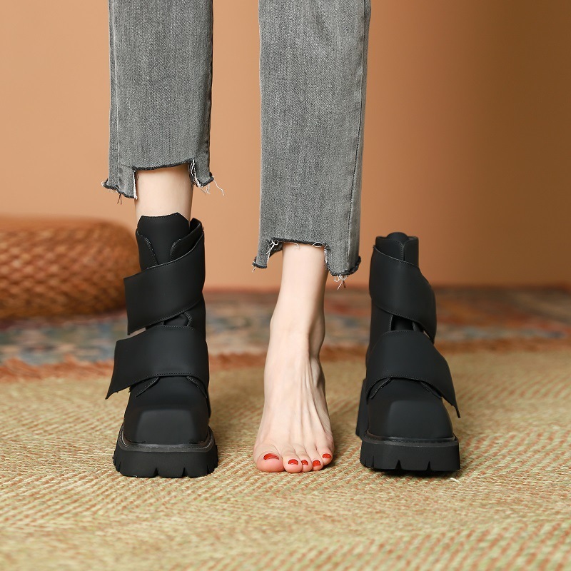 砂の面のショートブーツの女性の2024年の春秋の新型の厚い底のマーティンの秋の英倫の風の小さい背のやせているショートブーツ