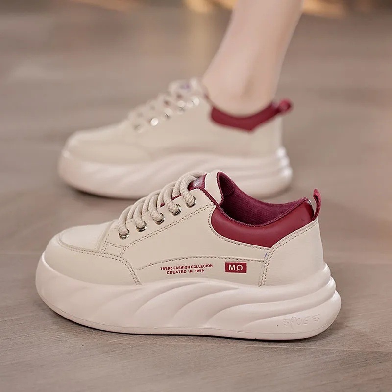 2024秋の白い靴の新型韓国版ins女子学生の厚い底のスポーツの板の靴のカジュアルな街はファッションの板の靴をたたきます。