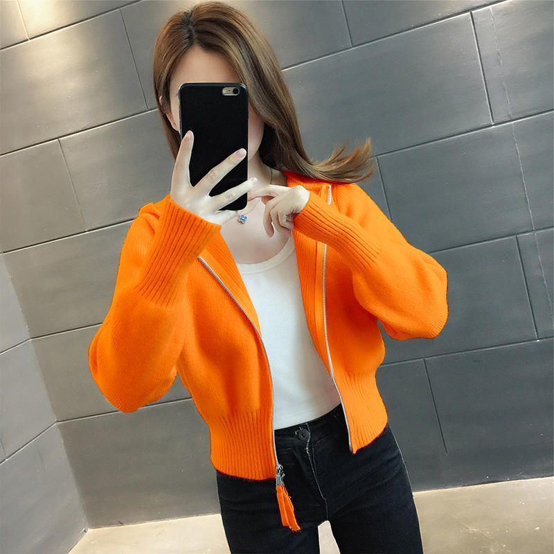 外は小香風の短いタイプの高腰ファスナーのカーディガンのニットコートの婦人服の2024年の新型の春と秋のセーターの上着を掛けます。