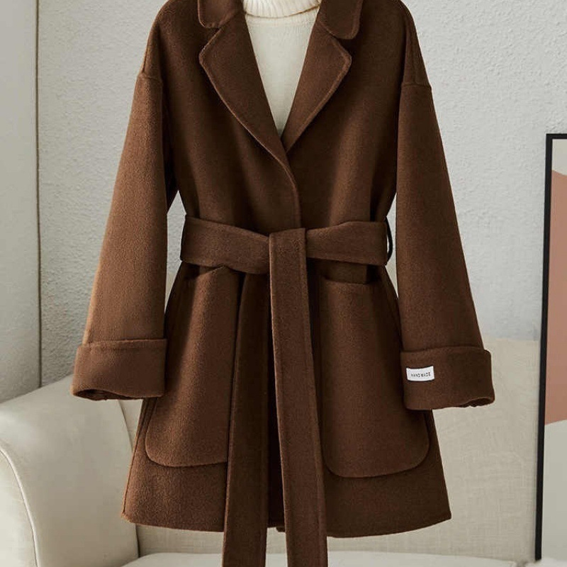 毛のコートの女性の短いタイプの小さい子の2024年と秋の冬の新型の毛のコートのひものコート