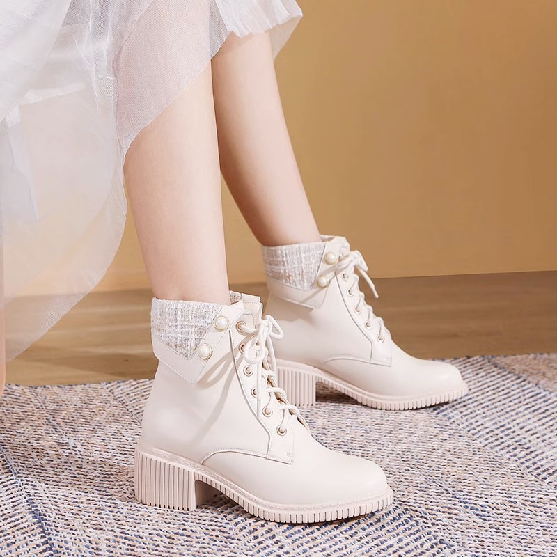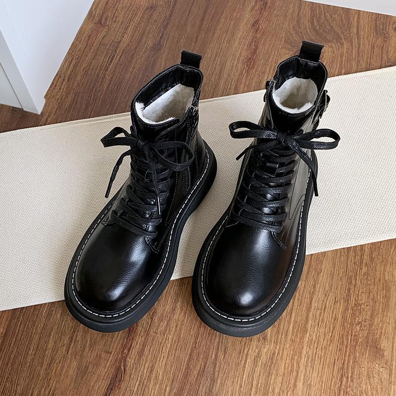 洋気痩せブーツ女2024年新型秋冬マーティンブーツ女英倫風厚い底ショートブーツ