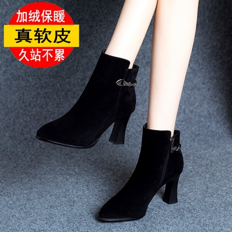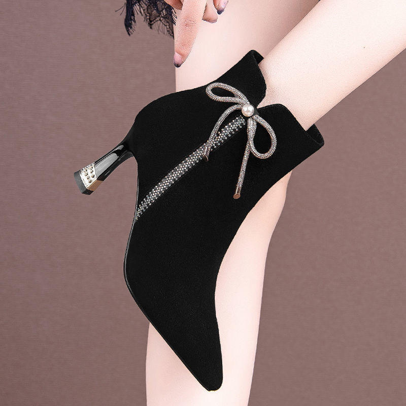 秋冬の先のとがったハイヒールのショートブーツの女性の細いと春と秋の単靴の2024の新型のファッションのドリルの砂の皮の女性の靴の足首の靴