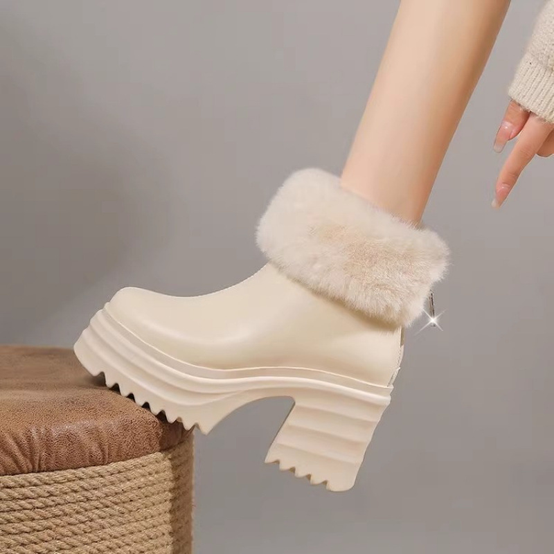 2024年冬の新型フランスの厚い底の保温と毛のショートブーツの女性の太さとハイヒールの雪のブーツのマーティンブーツ