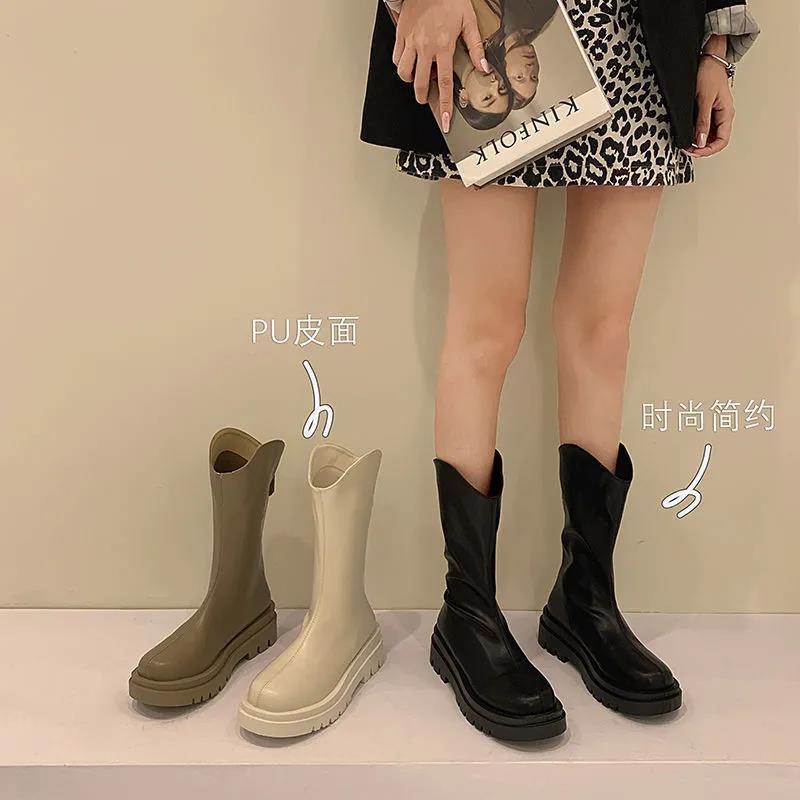 秋冬の新型の小さいブーツの女性は膝の高さと弾力性の靴の太さとマーティンの靴の組み合わせの高いブーツの女性を過ぎません。
