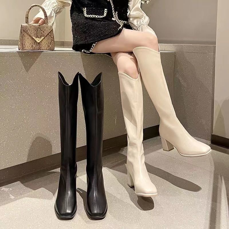 白いブーツの女性の気質の騎士の靴の2024新型のハイヒールの靴のデニムのやせているブーツの長靴のハイヒール