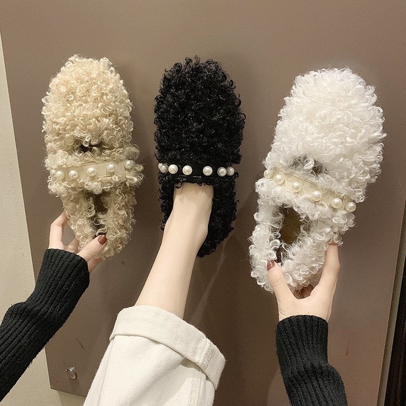 ウールの靴の女性の秋冬の新型の真珠は羊の巻きの毛の豆の靴の瓢箪の靴の女性の快適さを掛けます。