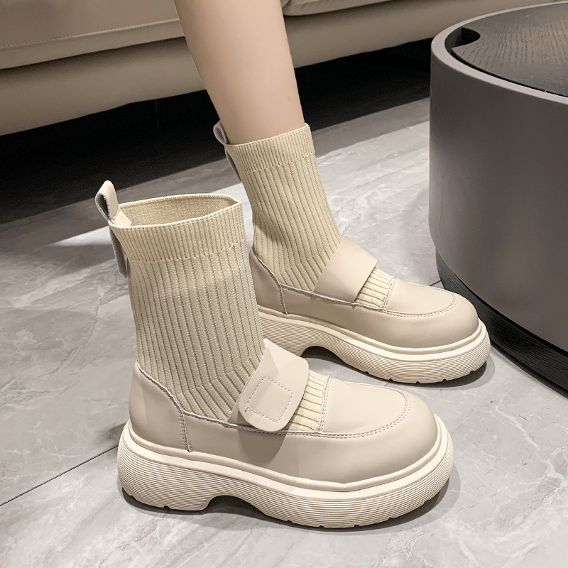 マーティンブーツの女性2024の新しい靴下ブーツのフランス風の小さなショートブーツの韓国版の厚い底のファッションは、ベルベットの保温靴の子供を合わせています