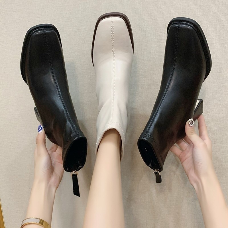 Z ショートブーツ レディースブーツ 2024 秋冬新作 万能太ヒール マーティンブーツ ポインテッドトゥ ハイヒール ヌードブーツ ストレッチブーツ スリムブーツ