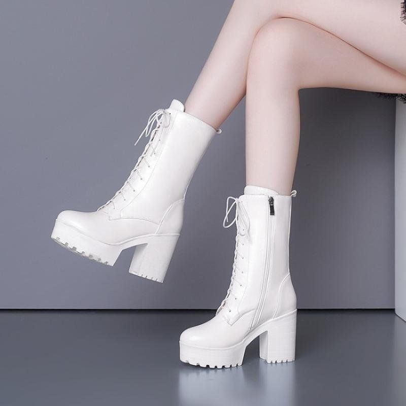 Zz ホワイト ハイヒール ショートブーツ レディース 冬新作 防水プラットフォーム マーティンブーツ 韓国風 厚底 ミドルブーツ 大きいサイズ レディースシューズ 4243