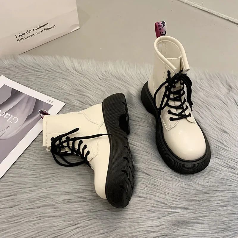 マーティンブーツの女性ins潮英倫風厚い底の韓国版百合2024年の新型秋冬とベルベットの保温ショートブーツ