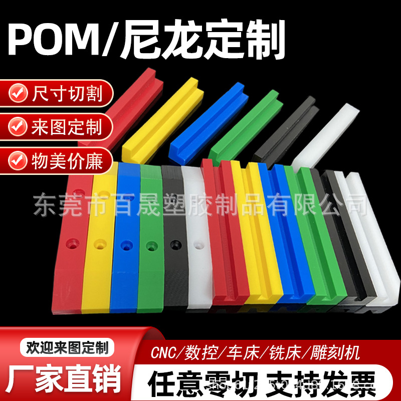 輸入POM鋼板加工、溝加工、面取りガイドレール、ナイロンストリップ、赤、青、黄、緑