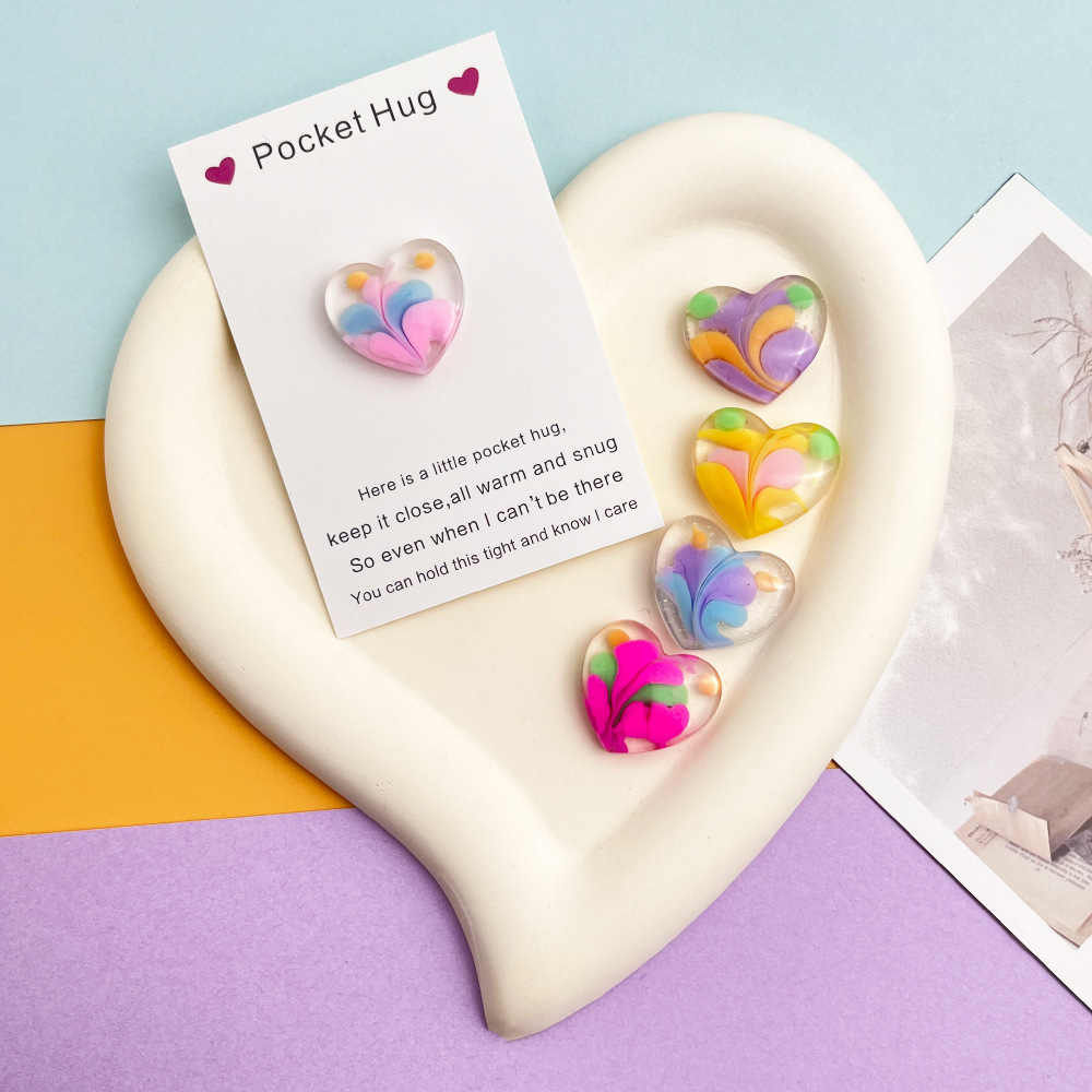 クロスボーダー新グラデーションラブポケットハグカードカラフルなハート型シリーズ樹脂装飾ギフトカード付き