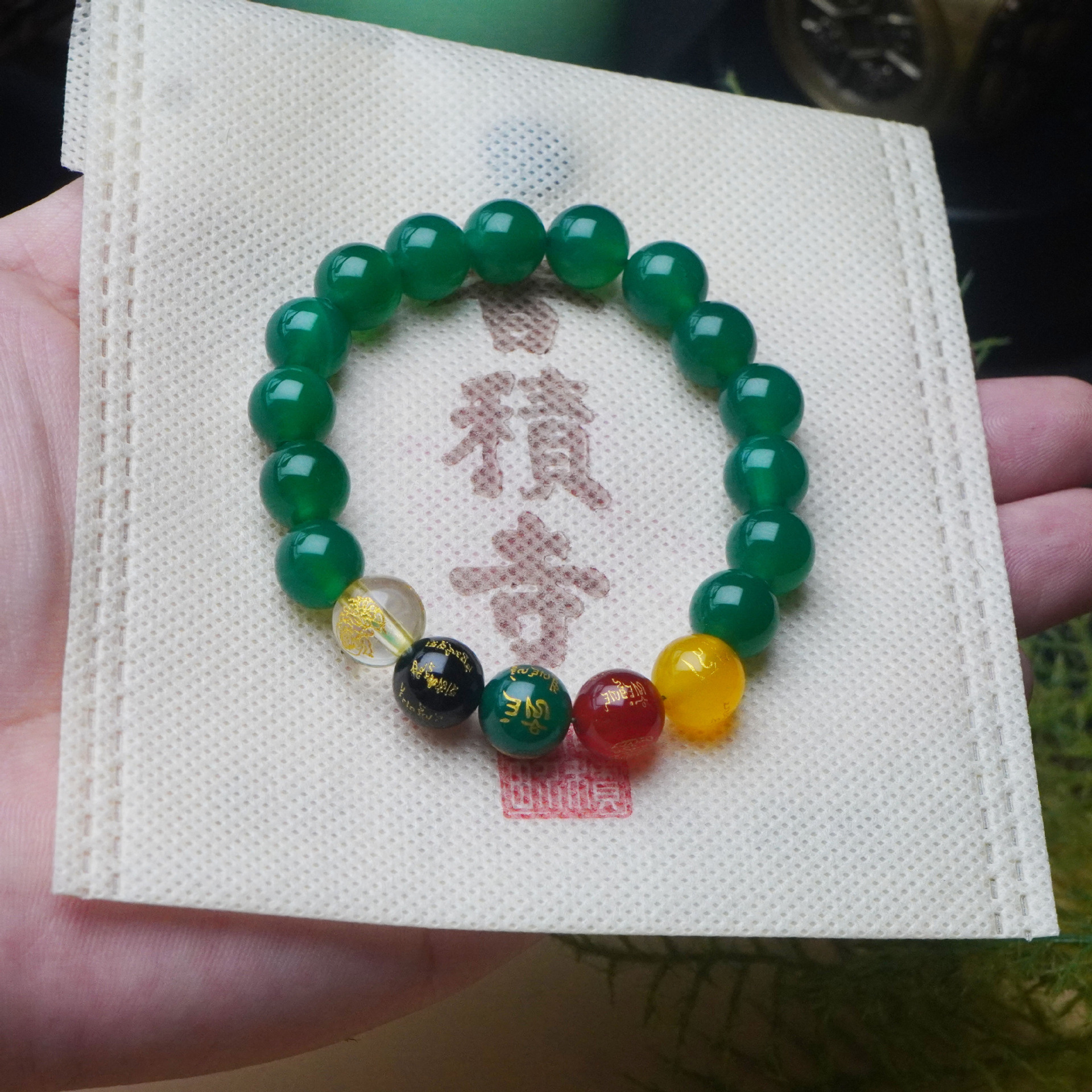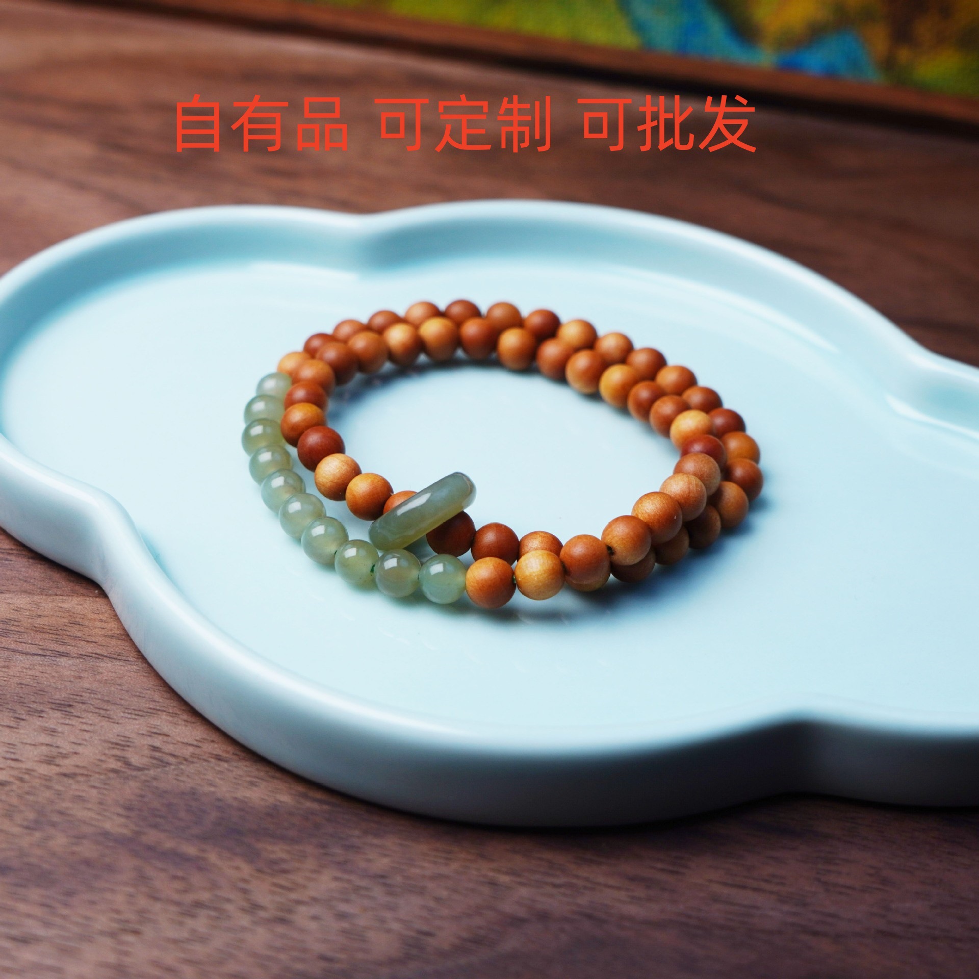 天然インド老山檀五条経手串中国式民族風抹茶緑瑪瑙ブレスレット観光スポット寺院ブレスレット