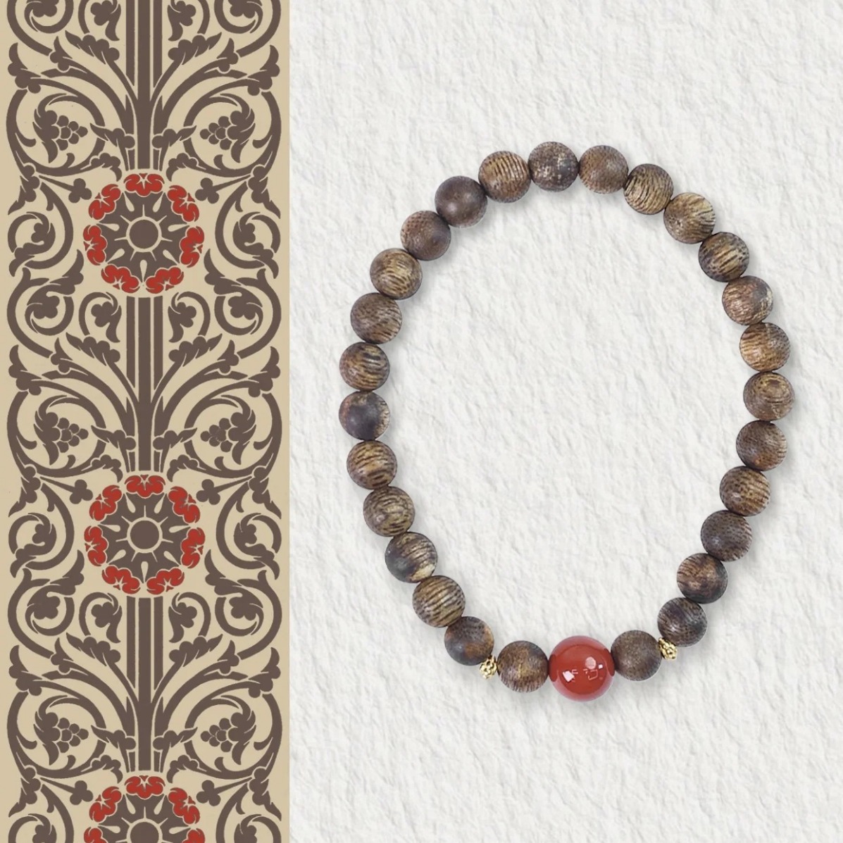 自然沈香と自然南紅S925銀金メッキファッション女子プレゼントブレスレット手串アクセサリー卸売り